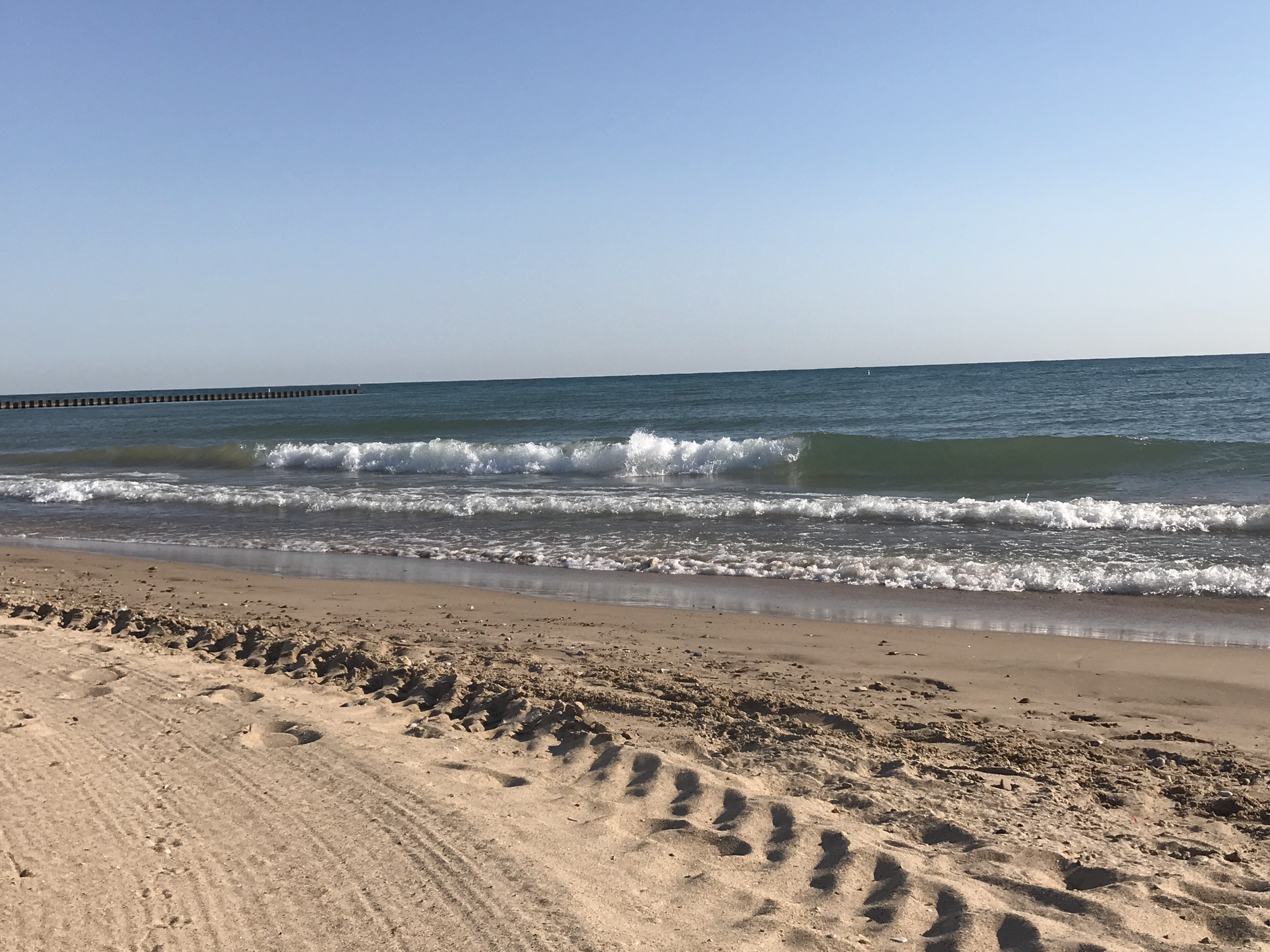 Our apartment here in Rogers Park is just a few blocks from the Leone Family Park Beach. I’m an early riser, and I can usually get over to the beach by about 7:30. It’s fairly empty at this time of morning,