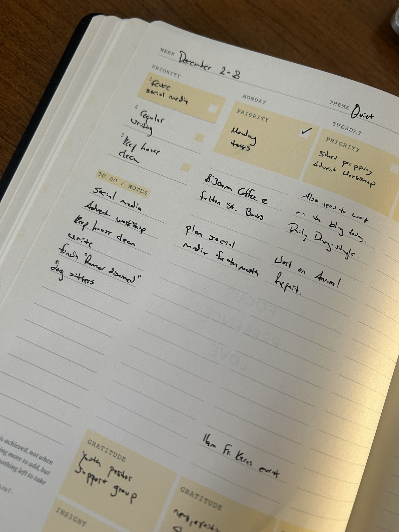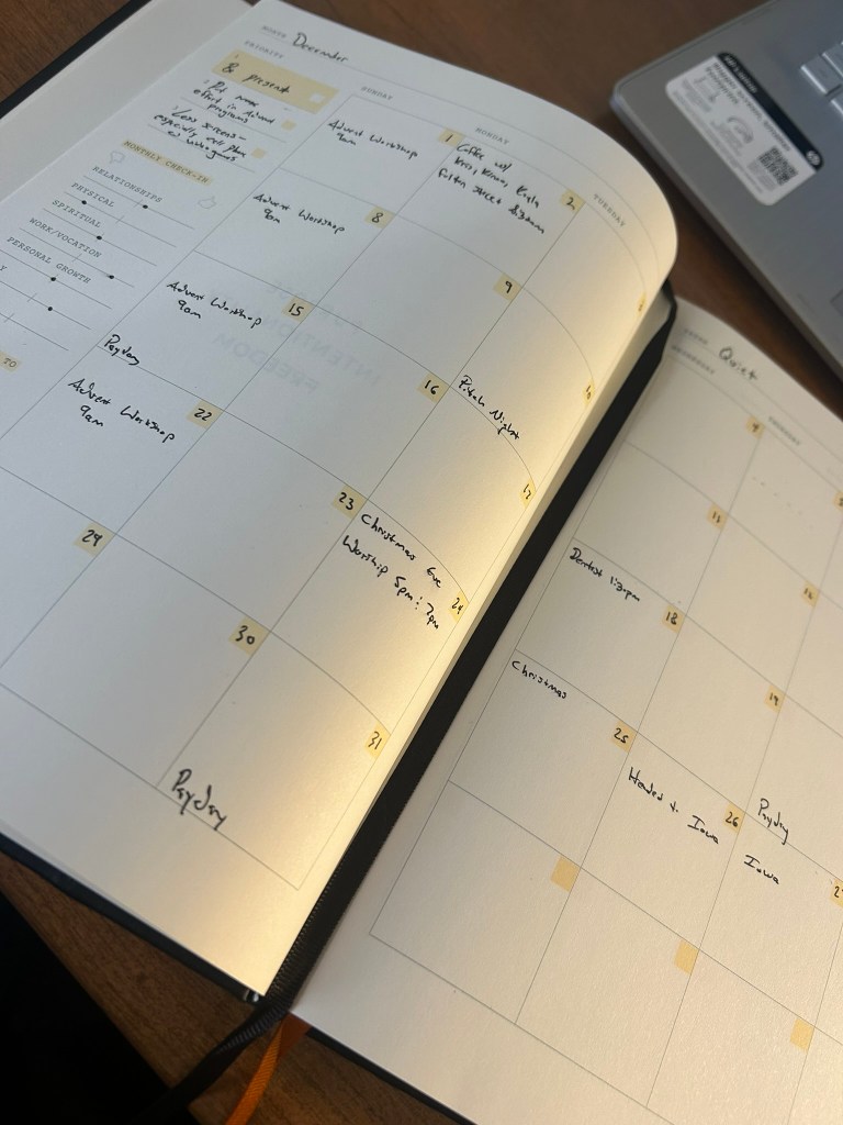 I’ll also, for promotional and social media purposes, try to include a picture every day, which may at times pertain to the topic, but more than likely won’t. For today, a picture of my new planner for this year, Monk Manual’s new Weekly Planner, which I am really loving so far: